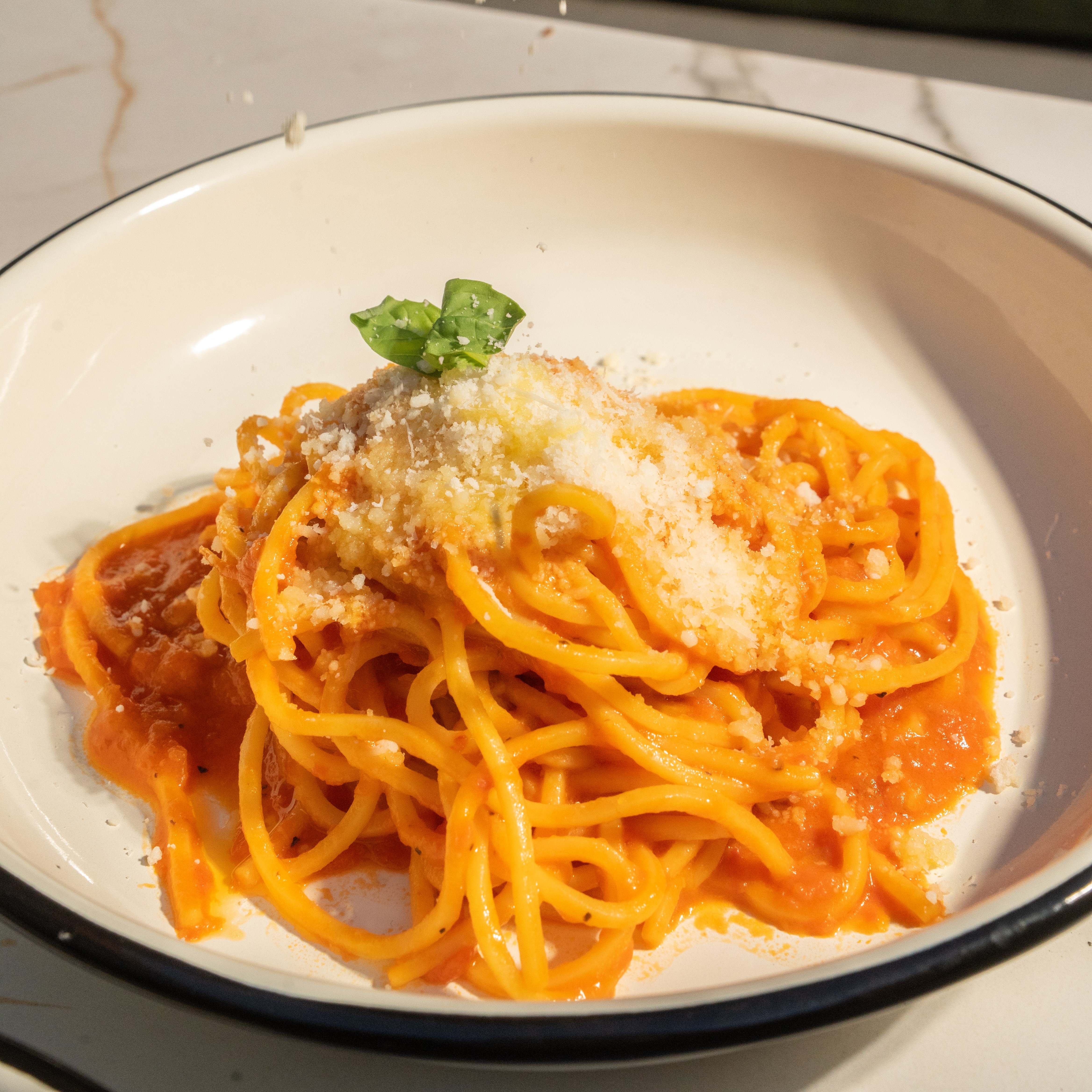 "Spaghetti like" fresh pasta, tomato and basil sauce.